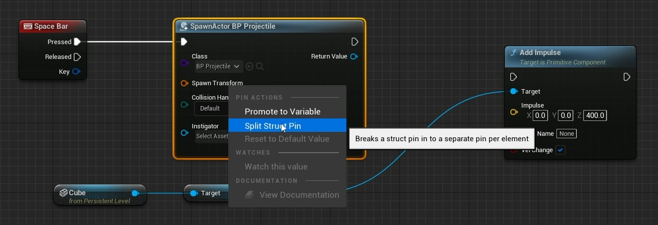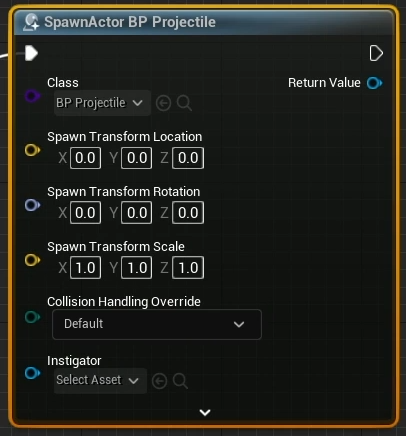 - Return Pin : 노드의 출력(데이터나 오브젝트 등) 스폰된 오브젝트를 반환