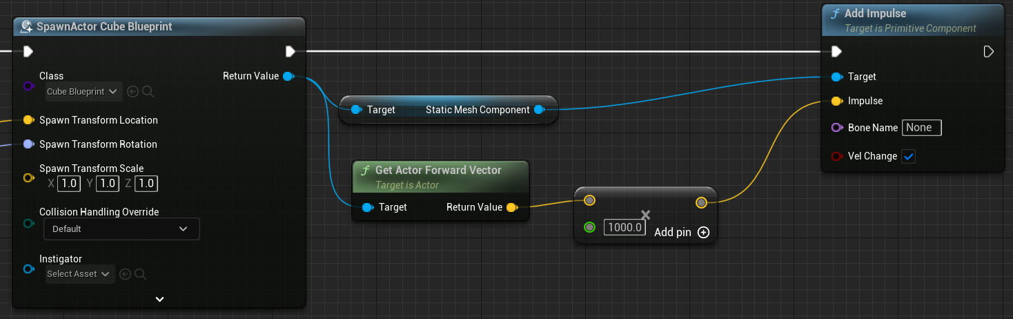 Forward vector는 Spawn Actor 노드로 부터 참조하거나