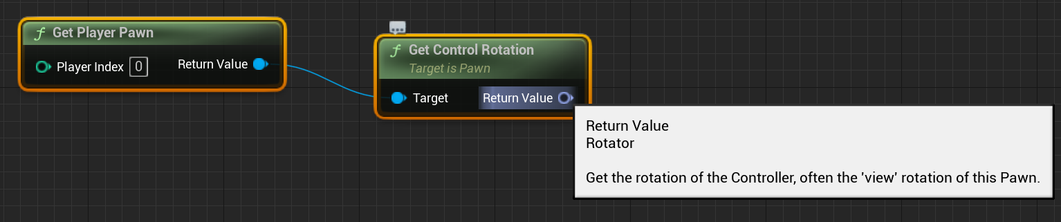 이럴때 Control Rotation Node를 가져온다. 해당 노드의 아웃풋은 Rotator이다