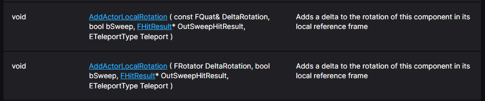 AddActorLocalRotation은 AActor 클래스 안에 있는 멤버 함수 이다.