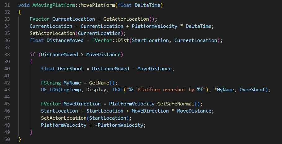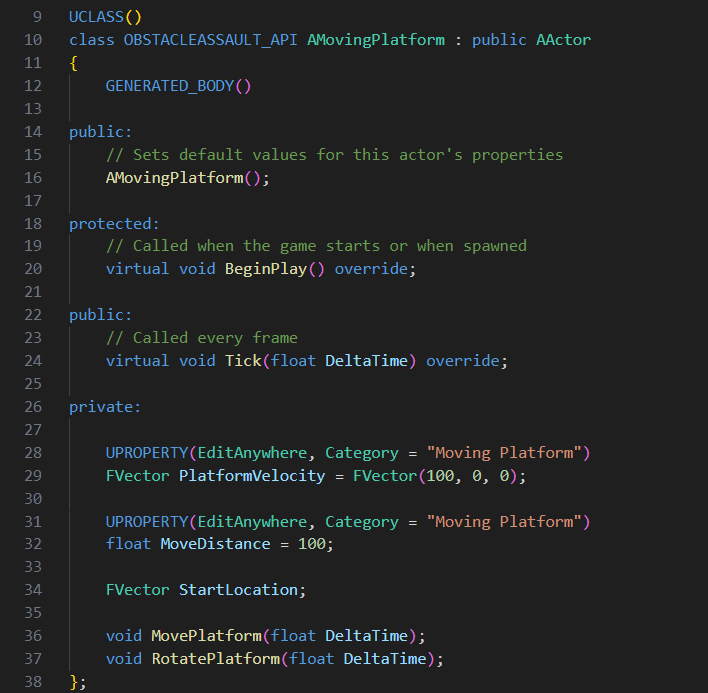 class AMovingPlatform에 변수나 함수를 정의한다.