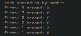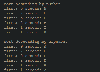 {1, 'Z'} -> {1, 'K'} 이었지만 {1, 'K'} -> {1, 'Z'} 순으로 알파벳도 정렬된 모습을 볼 수 있다.