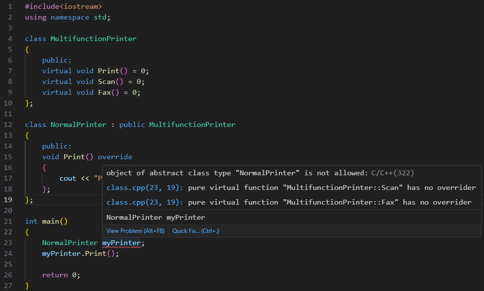 class MultifunctionPrinter : public IPrint, public IScan, public IFax {