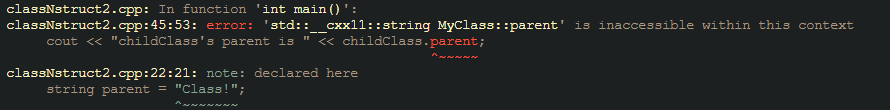 cout << "childClass's parent is " << childClass.parent; <<=== 오류