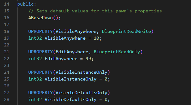 | Read Only | VisibleAnywhere | BlueprintReadOnly | |