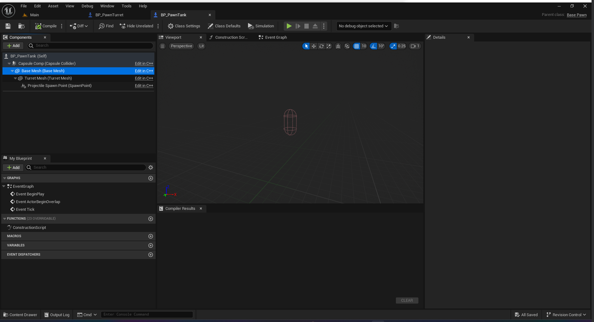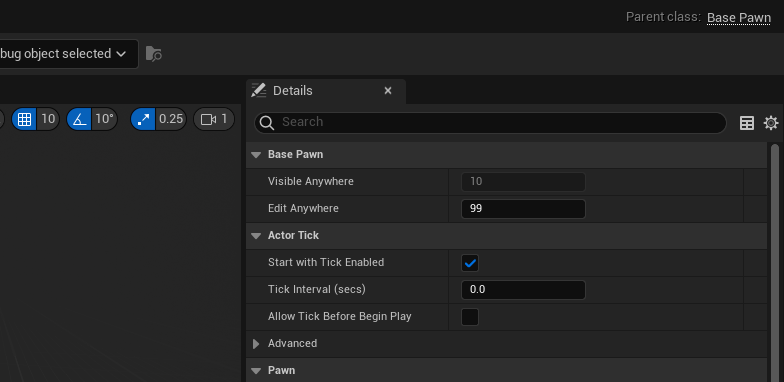 생성된 Blueprint를 보면 Parent class가 Base Pawn이라는걸 볼 수 있다.