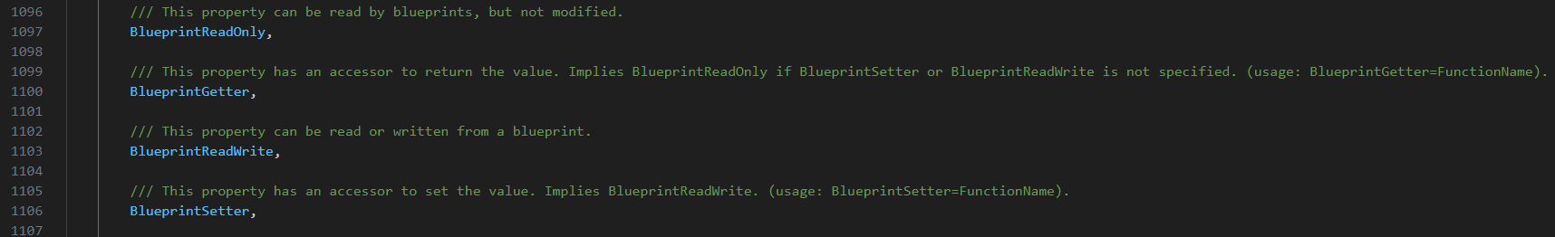 | Read / Write | EditAnywhere | BlueprintReadWrite | |