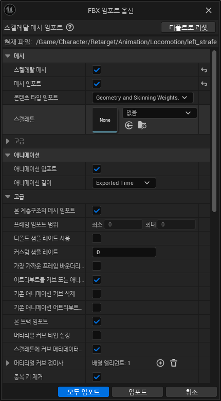 두번째로는 메시 임포트가 체크되어있는 경우가 있는데 이것을 해제해 주어야 한다.