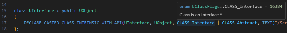 그리고 보면 UInterface의 EClassFlags가 CLASS_Interface로 되어있다.