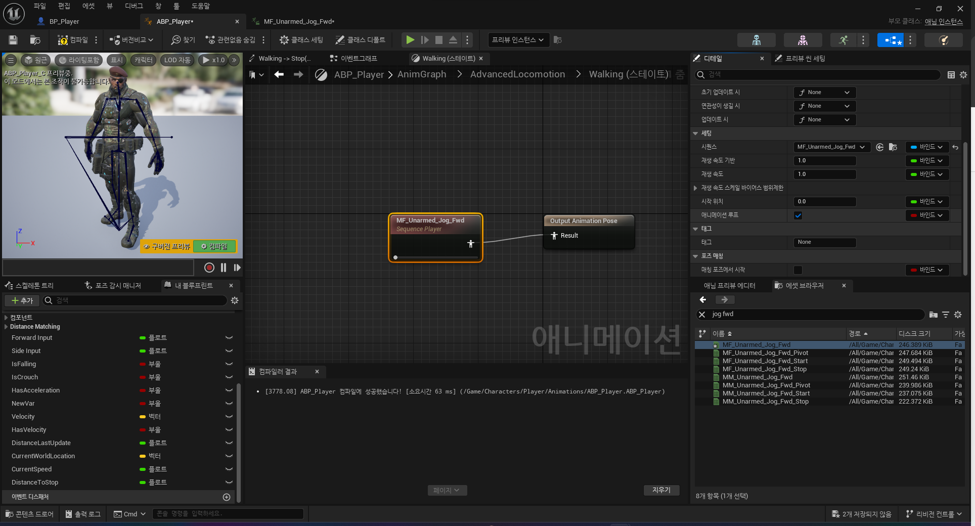 오늘의 진도: Part 2. Animation Ch 2. Locomotion 2_디스턴스 매칭 Ch02-03 ~ Ch 3. Locomotion 3_포즈워핑 Ch03-02. 포즈워핑 문제 수정