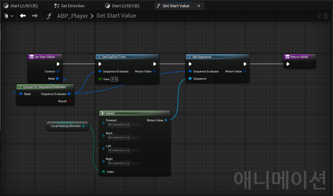 진행 방향에 따라 애니메이션이 선택 되도록 SetStartValue를 수정한다.
