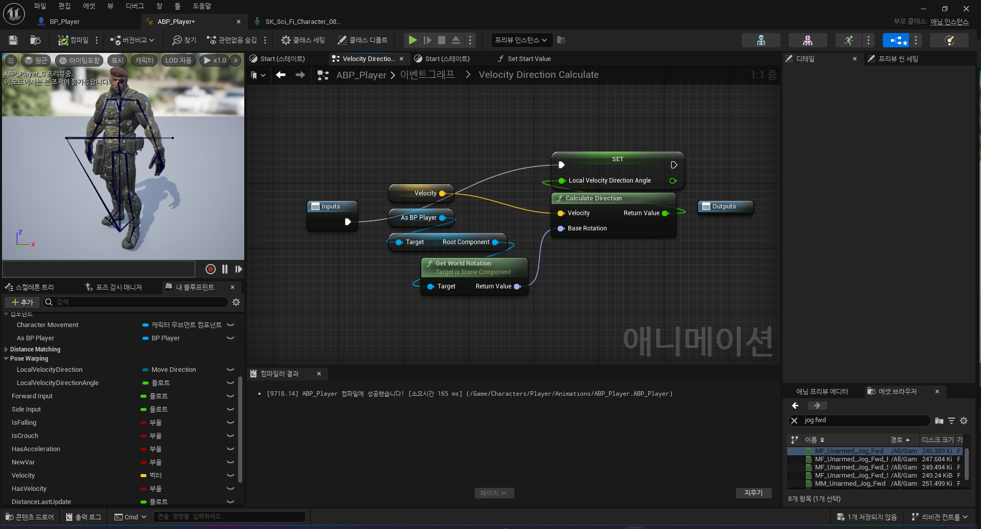 플레이어의 속도 값과 회전값을 가져와서 방향을 구해 변수로 생성한다. (LocalVelocityAndDirectionAngle)