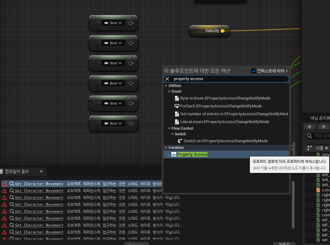 프로페티 엑세스를 사용하여 컴포넌트나 변수를 호출하면 해당 데이터의 스냅샷이 찍히고, 이를 사용하여 애님 그래프, 애니메이션 노드 함수, 블루프린트 스레드 세이프 함수 또는 이벤트 그래프에서 함수 로직을 구동할 수 있다 한다.
